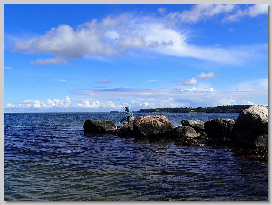 Seit langer Zeit endlich mal wieder Salzwasser. Schweden im Juni, an heimischen Seen im Juli und August auf Hecht und Barsch, Zeit nachzuschauen, was die Meerforellen so machen. Sechs Uhr treffen an der A7, gegen acht am angepeilten Spot. Nach einem etwas längeren Fussmarsch - immer wieder die gleichen Gespräche über Shuttleservice, oder beim nächsten Mal vielleicht ein Quad dabei haben - ging es auf die Pirsch.
